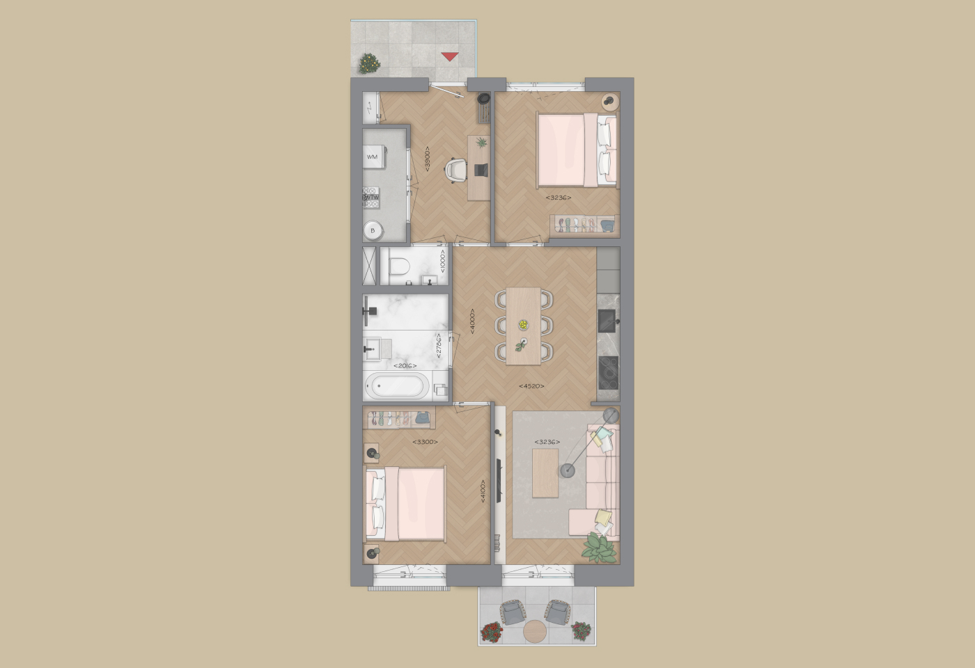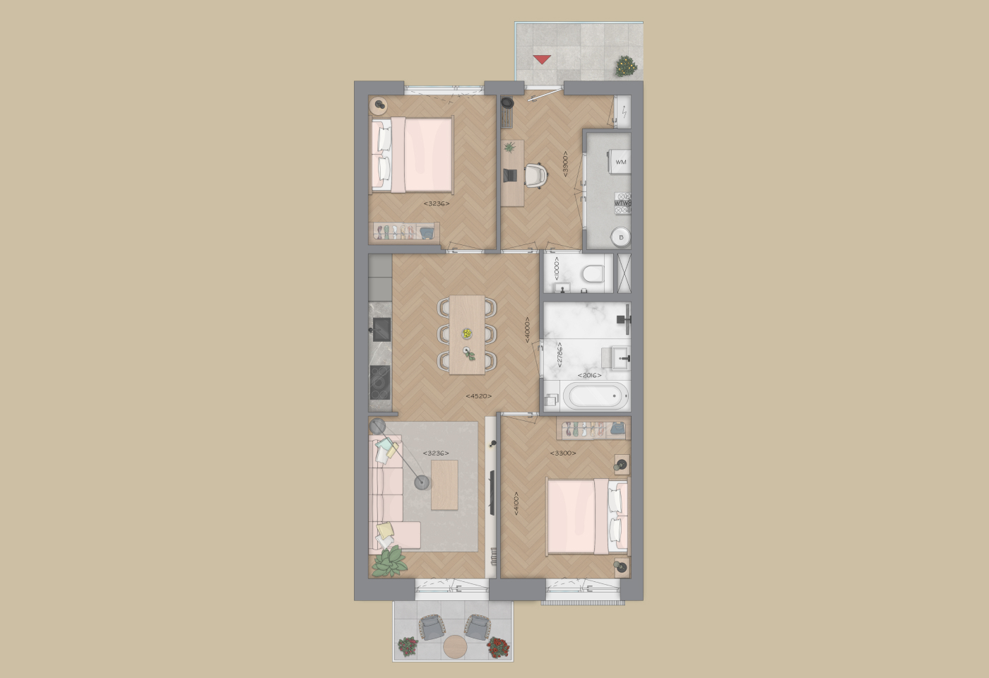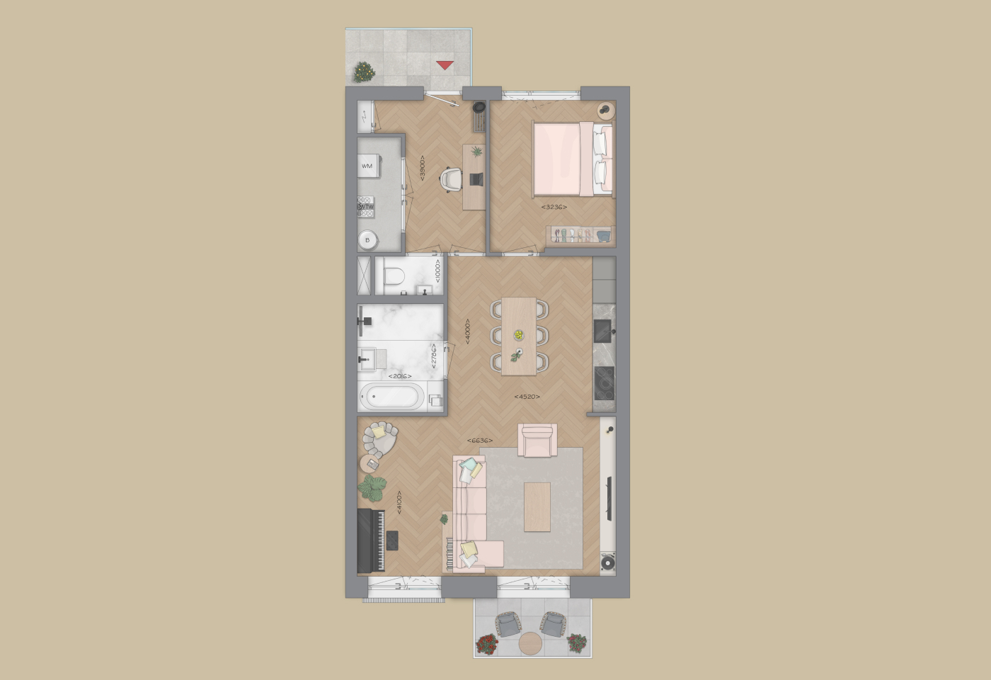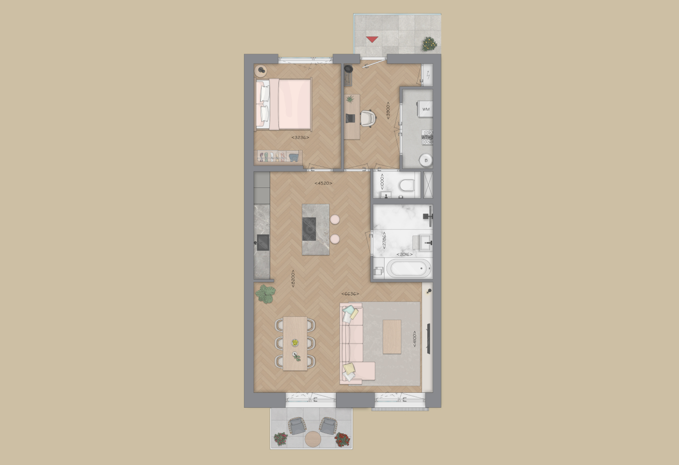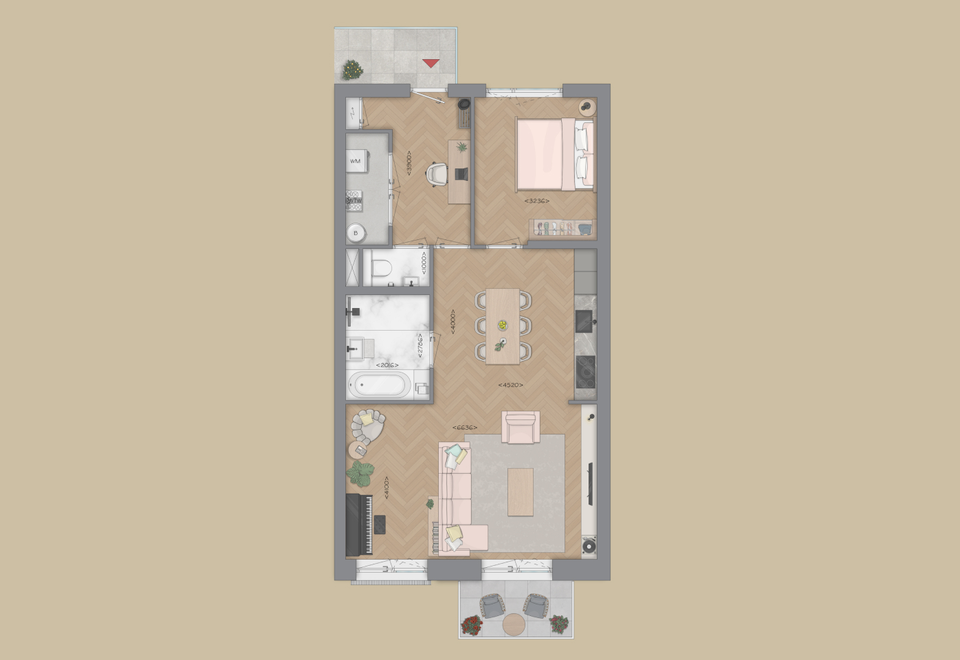 Het appartement beschikt over twee grote slaapkamers. De luxe Bruynzeel keuken en de ruime badkamer met mogelijkheid voor een bad is modern en compleet ingericht. Daarnaast een separaat toilet, interne berging o.a. voor wasmachine en droger.