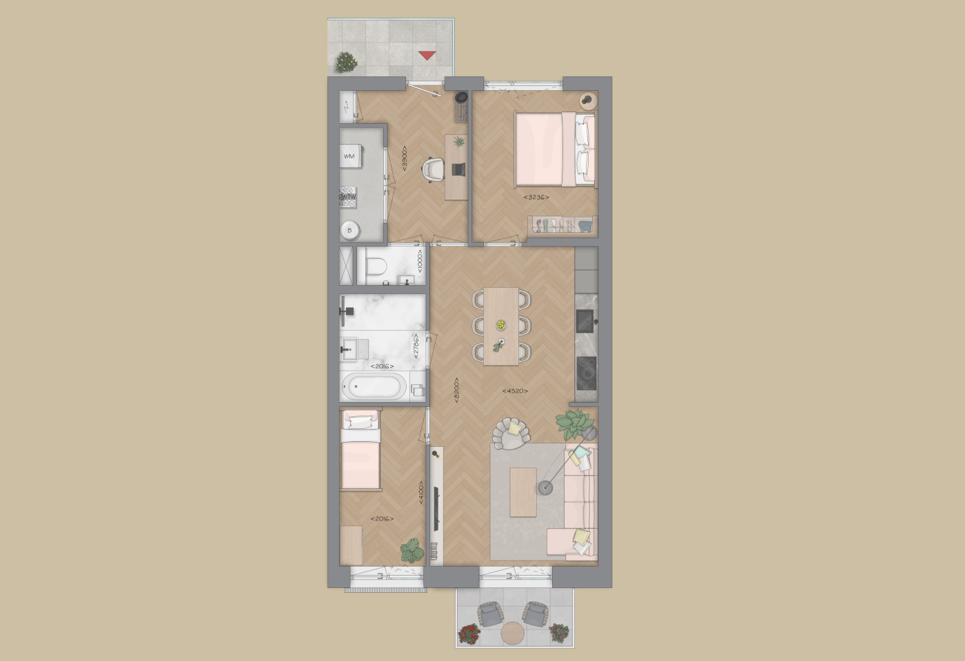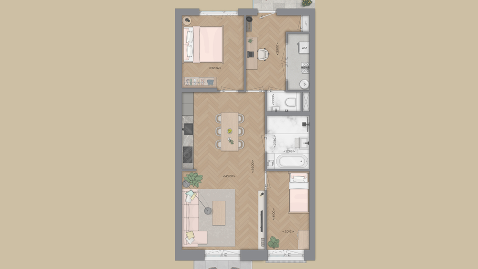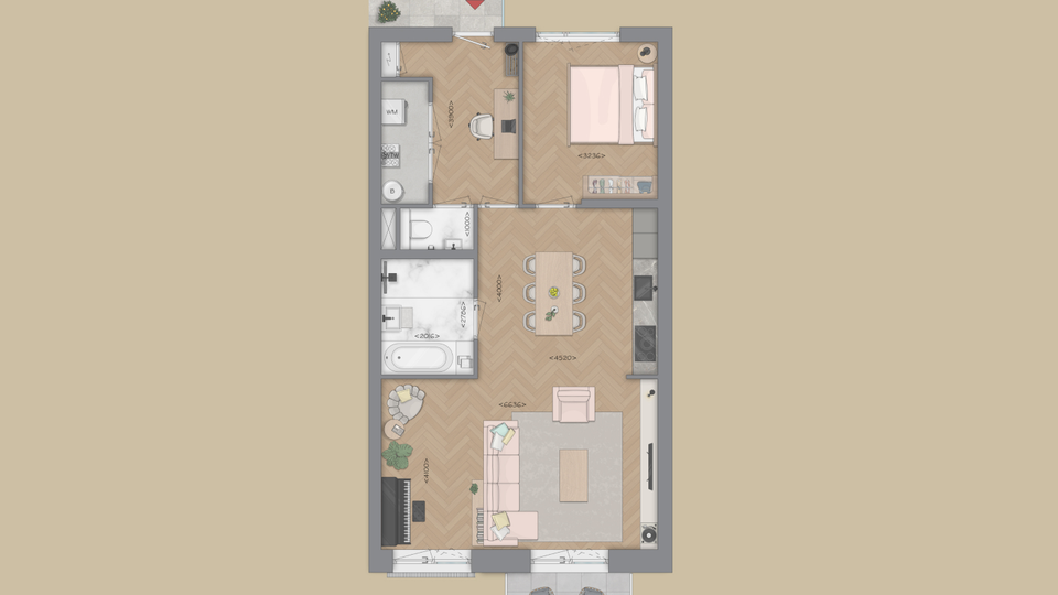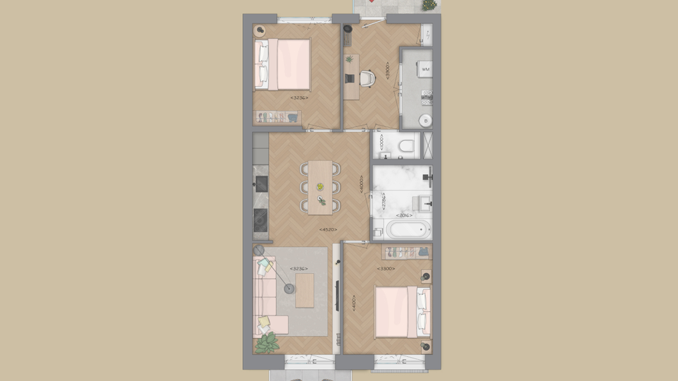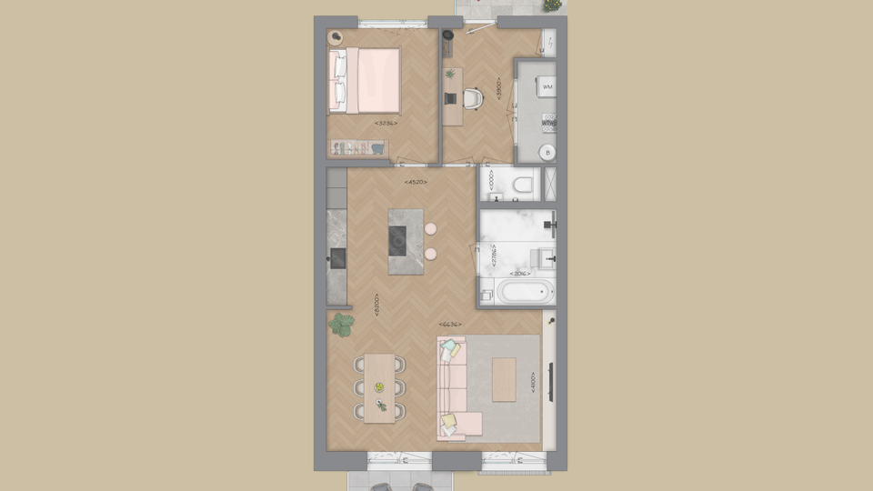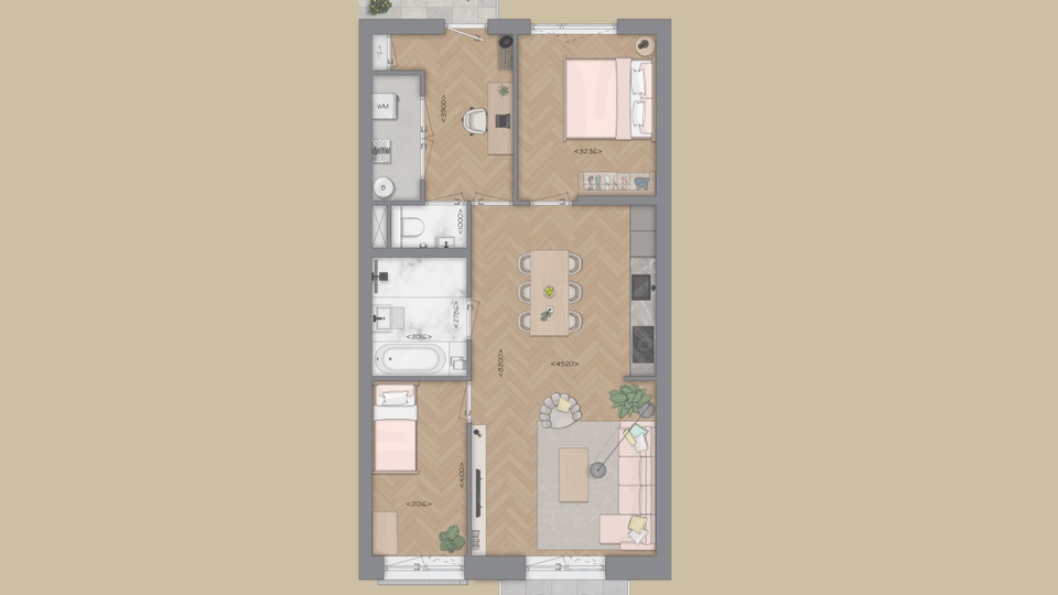 Wat woningtype D zo bijzonder maakt: is de flexibiliteit van indeling. Zo kun je ervoor kiezen om de slaapkamer aan de voorzijde te verkleinen (optie 1) of zelfs helemaal te laten vervallen (optie 2), waardoor er een extra ruime woonkamer ontstaat. Daarnaast biedt de royale hal volop de mogelijkheid om deze ook in te richten, bijvoorbeeld als thuiswerkplek.